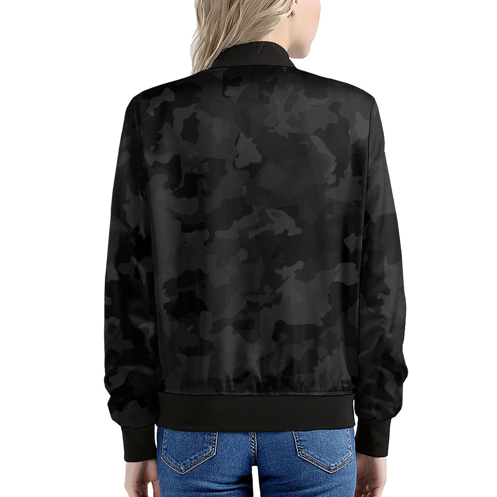 Black Camouflage Print Women’s Bomber Jacket