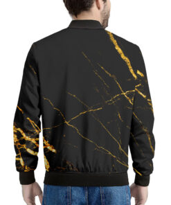 Black Gold Scratch Marble Print Men’s Bomber Jacket