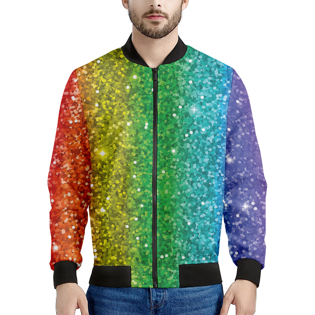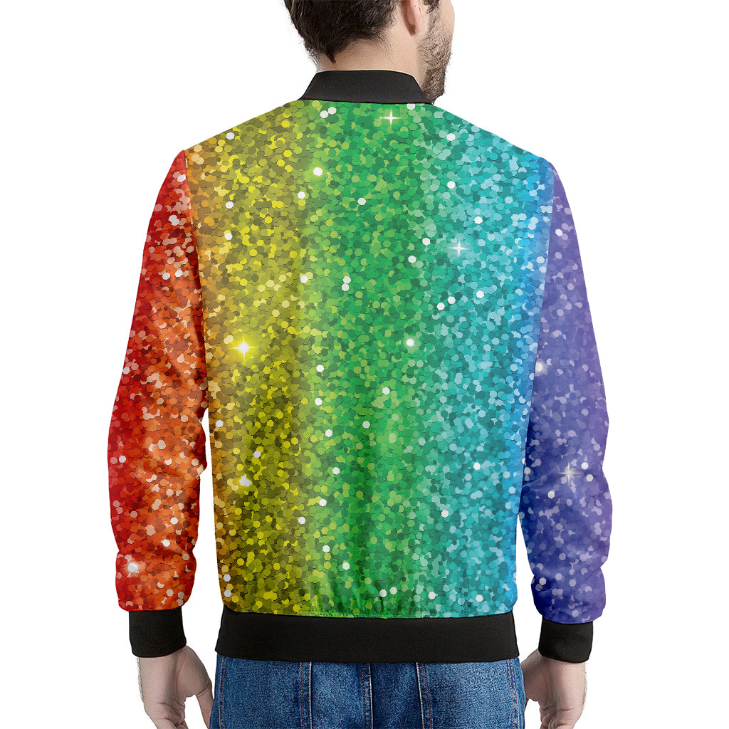 Rainbow (NOT Real) Glitter Print Men’s Bomber Jacket